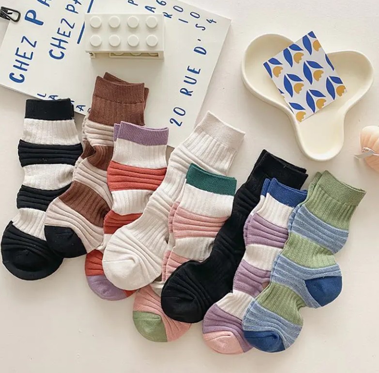 - 綿またはウールのミッドチューブソックス: 彼らは湿気を吹き込み、通気性があり、暖かさと快適さを提供し、秋と冬にブーツやカジュアルな靴と組み合わせるのに最適です。