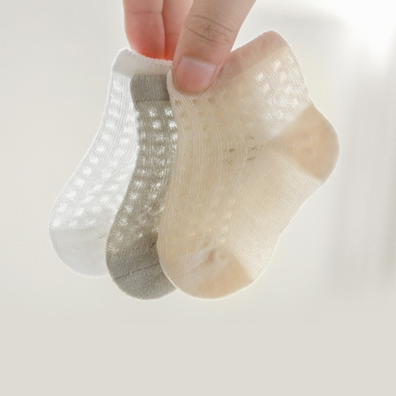 • ベビーソックスサマーニューウルトラ薄いメッシュ通気性アイスシルク骨なし弾性口ショート新生児のベビーストッキング