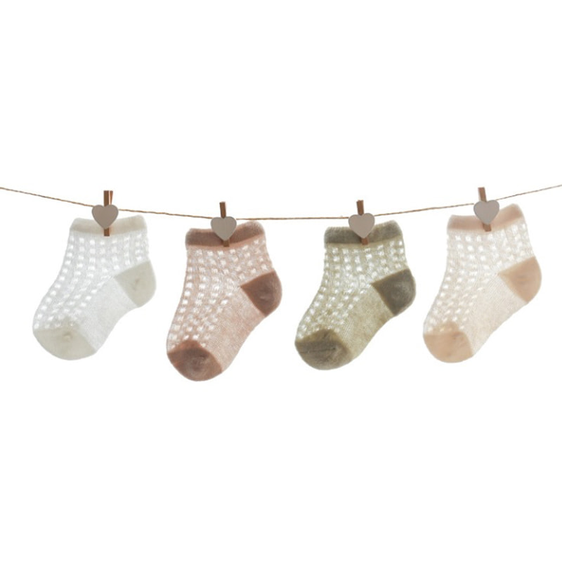 / 製品 / 子供の靴下 / 子供の短い靴下 / ベビーソックスサマーニューウルトラ薄いメッシュ通気性アイスシルク骨なし弾性口ショート新生児のベビーストッキング