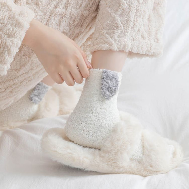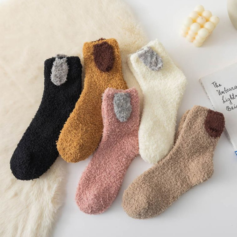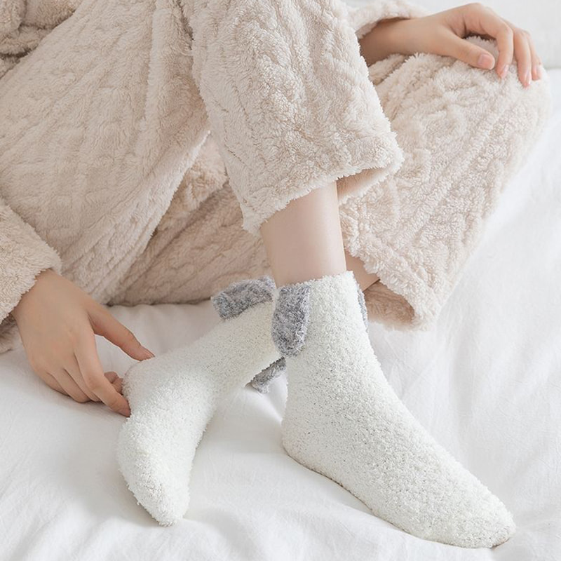 製品設計には、現代の若い女性の美的ニーズを満たす、シンプルさ、新鮮さ、可愛らしさを特徴とする日本の要素が組み込まれています。靴下は3次元のウサギの耳で装飾されており、楽しいと可愛さを高め、人々が一目でユニークな魅力を感じさせます。柔らかく、快適で、暖かいサンゴのフリース素材で作られており、家庭環境で着るのに非常に適しています。同時に、サンゴのフリースの質感は、足に良い触覚体験をもたらすこともできます。靴下の一部の領域は、サンゴのフリースの暖かさを保持するだけでなく、通気性と柔軟性を高めるだけでなく、より快適に装備します。